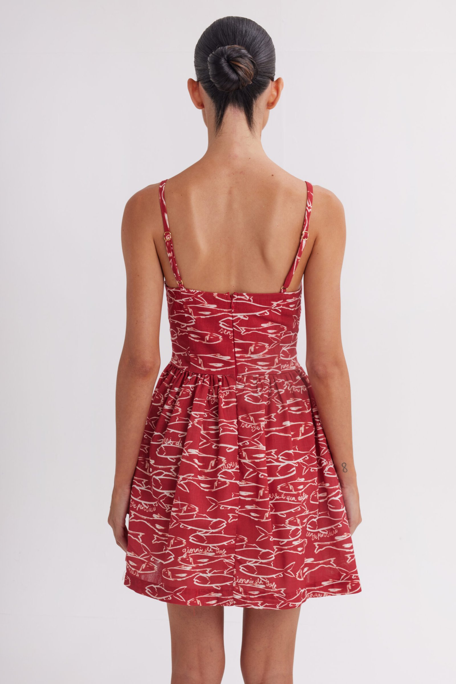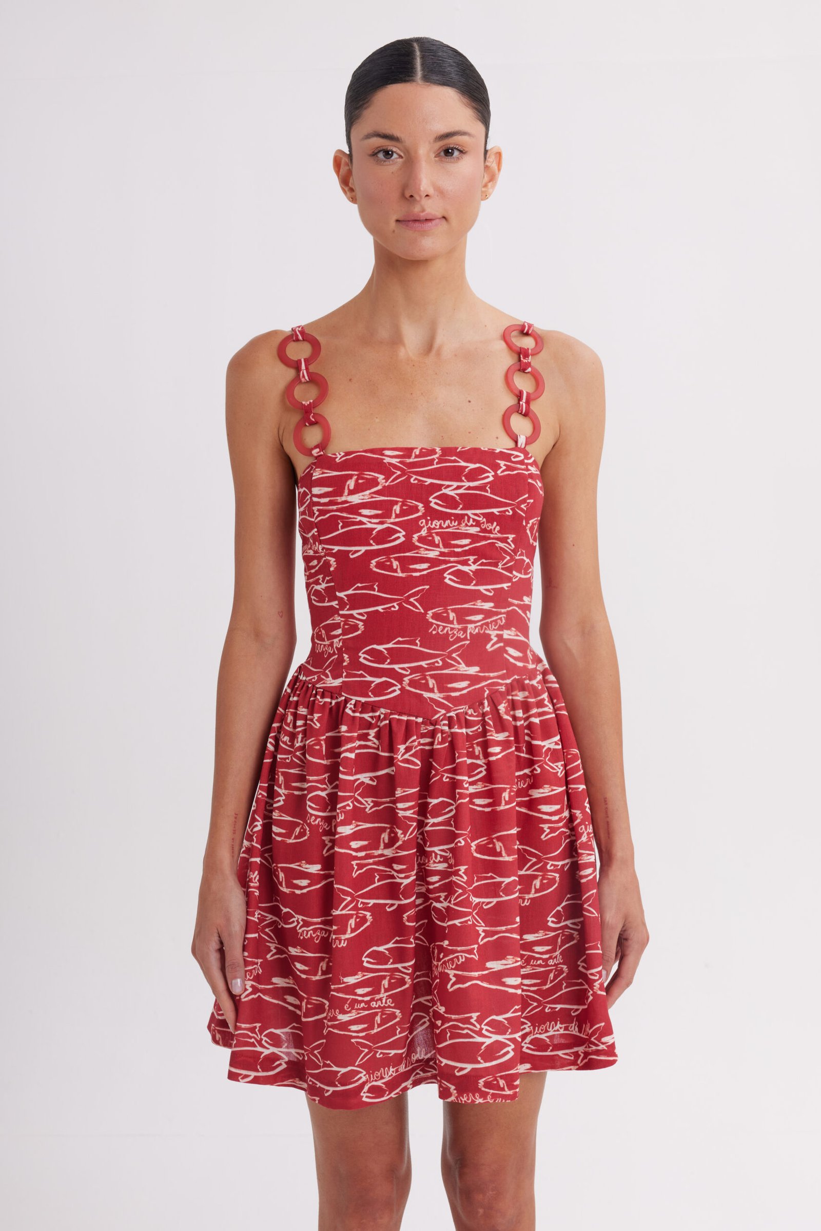 VESTIDO PRINT PECES ROJO CON AROS